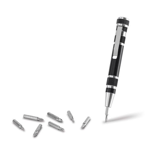 Отвертка с форма на химикалка с 8 различни подвижни накрайника.