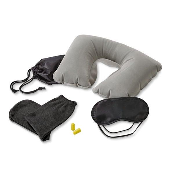 • Комплектът включва надуваема възглавница за врат, маска за спане, тапи за уши и 1 чифт чорапи.