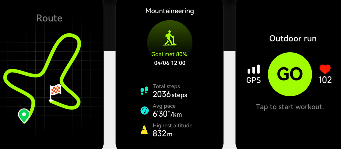 Sports Recognition Mode Automatically detect and track a variety of sports activities. ACTIVE smartwatch helps you monitor your progress, providing personalized recommendations to reach your health and fitness aspirations. | Advanced Fitness Monitoring Keep track of your fitness progress. Set fitness goals and achieve them with personalized feedback and suggestions based on your performance. |