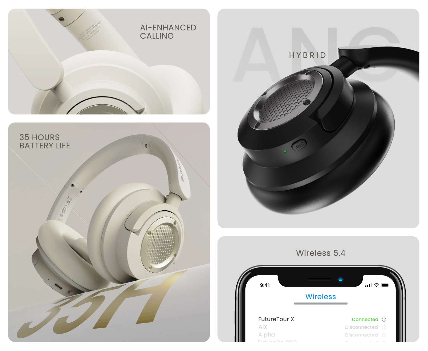 FutureTour X comes with a 3.5mm audio jack, ensuring uninterrupted music experience. Compatible with smartphones, tablets, laptops, and more, you stay in sync with any device, anytime, anywhere. Switch effortlessly between wired and wireless modes to match your lifestyle.
