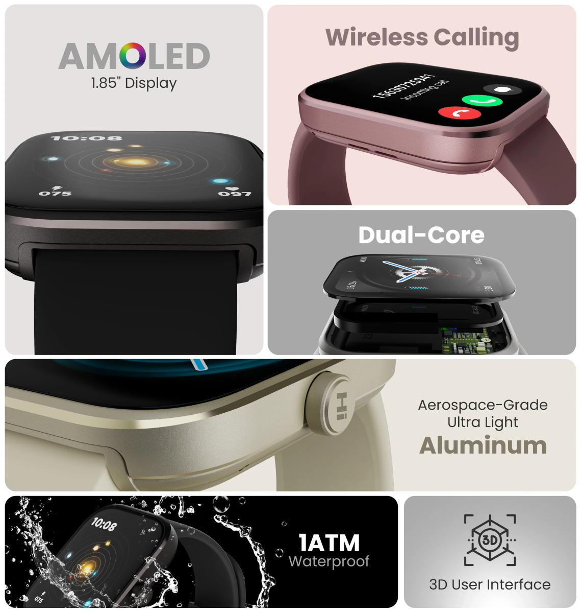 Смарт часовник HiFuture Lume Pro, 1.85" (4.69cm) AMOLED дисплей, Bluetooth, сензор за сърдечен ритъм и сън, 1ATM водоустойчивост, до 7 дни живот на батерията, бежов50.89 €