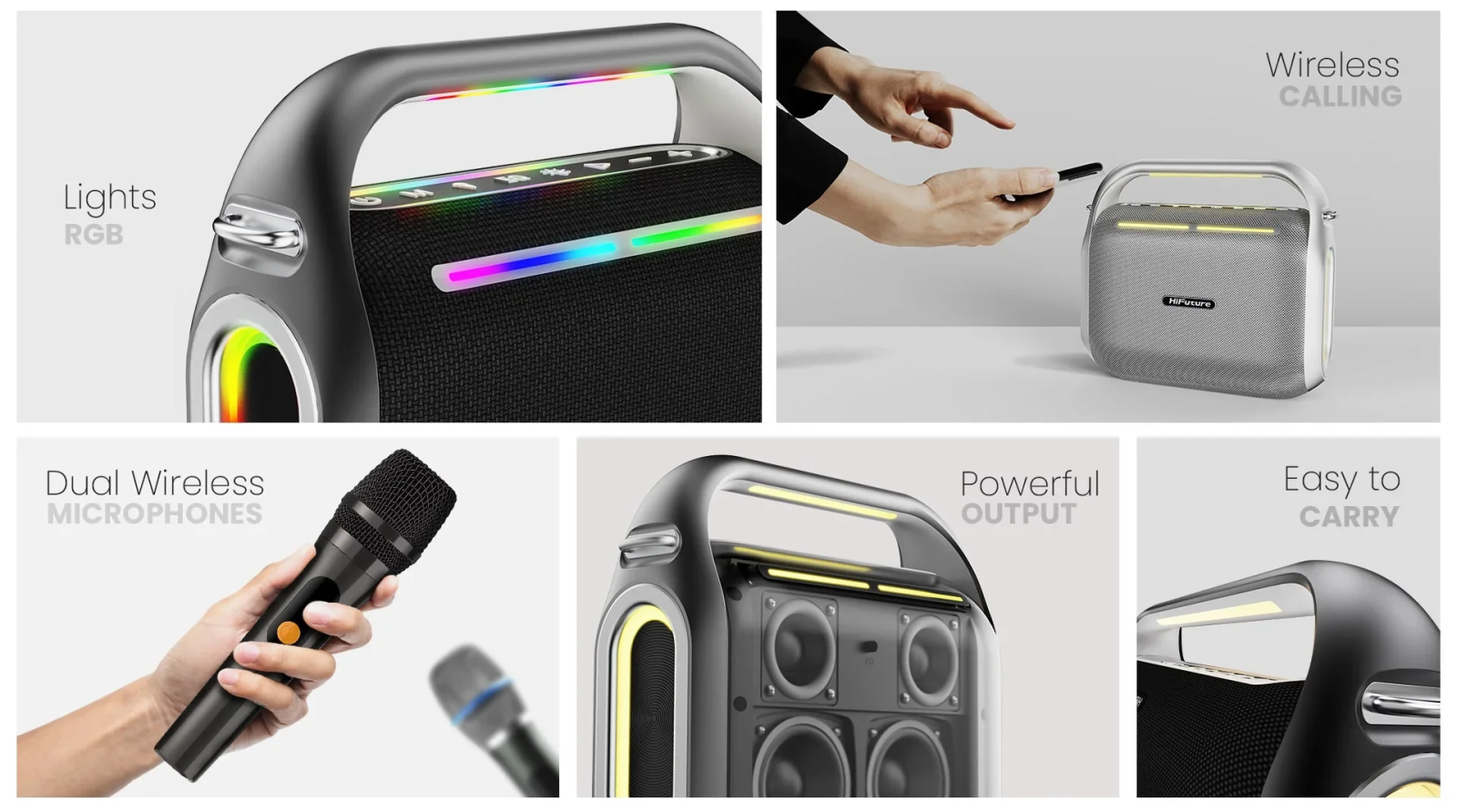Create the perfect ambience for your party with vibrant RGB lighting that syncs with your music, adding a dynamic visual experience to your sound.