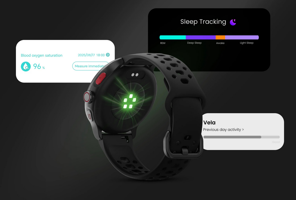 VELA keeps an eye on what matters most, you. With AI-powered health monitoring, you check everything at the same time, you heart's health, every activity you perform, and accuracy of your sleep patterns, and more, all at once.