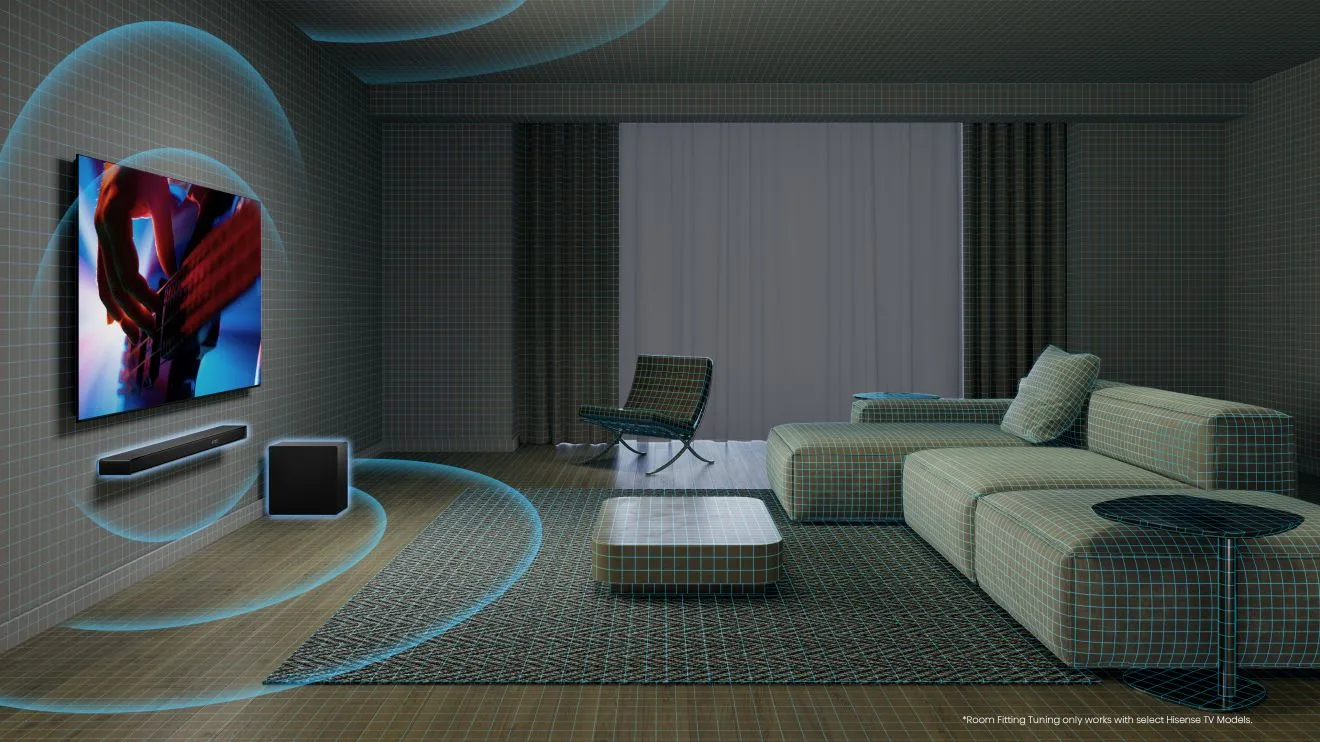 Optimize your sound to match your specific room environment, delivering a tailored sound experience that adapts seamlessly to your space for precise sound quality based on the AI technology embedded in your Hisense TV.*Room Fitting Tuning only works with select Hisense TV Models.
