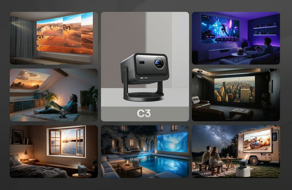 Hisense C3 е компактен троен лазерен проектор, който съчетава 4K резолюция с впечатляващо възпроизвеждане на цветове. С 2 500 ANSI лумена, IMAX Enhanced сертификация и гъвкав дизайн на гимбал, той е подходящ както за хола у дома, така и за мобилна употреба в градината или при пътуване. HEIMKINORAUM ви представя този универсален проектор, който носи качество на домашно кино почти на всяко място.