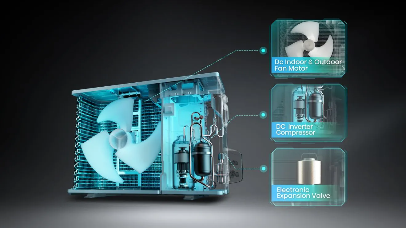 Full DC inverter technology is a collection of high-end technology, which realizes intelligent operation of air conditioner and minimizes energy loss. The compressor runs more efficiently and smoothly, the temperature control is more precise, and the unit is quiet. SEER/SCOP increased by 25%, energy saving 30%.