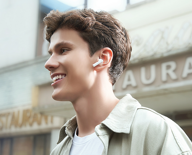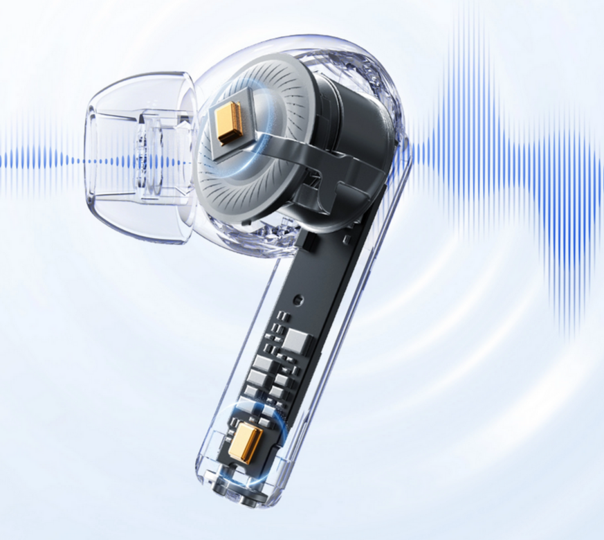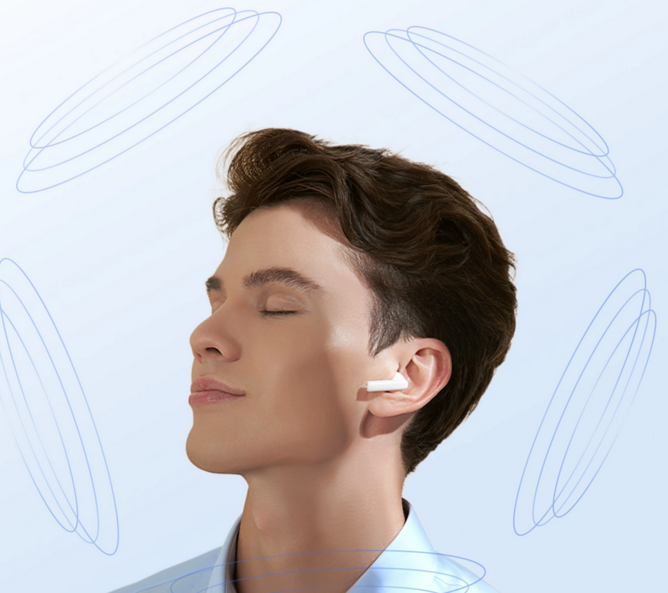 The earbuds use dual-mic ENC technology and advanced AI algorithms to accurately capture and eliminate background noise, isolating and amplifying the speaker's voice even in noisy surroundings, making communication easier and smoother.