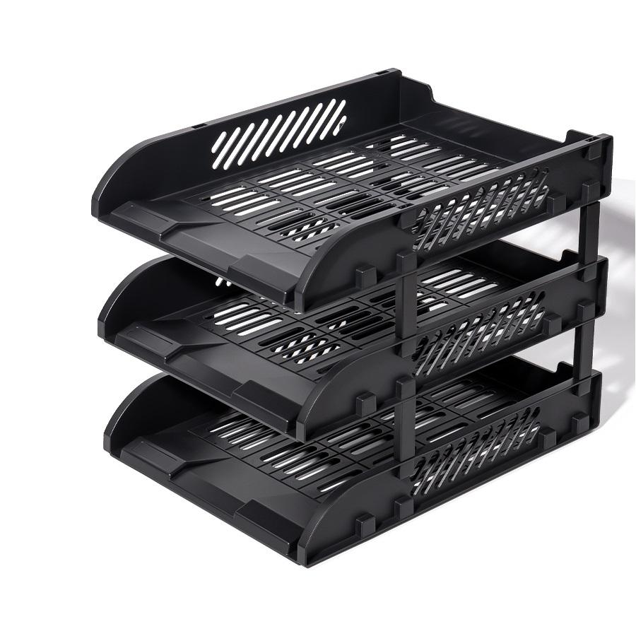 Хоризонтални поставки Deli 9217ES, PP+ GPPS, комплект 3 бр., черни