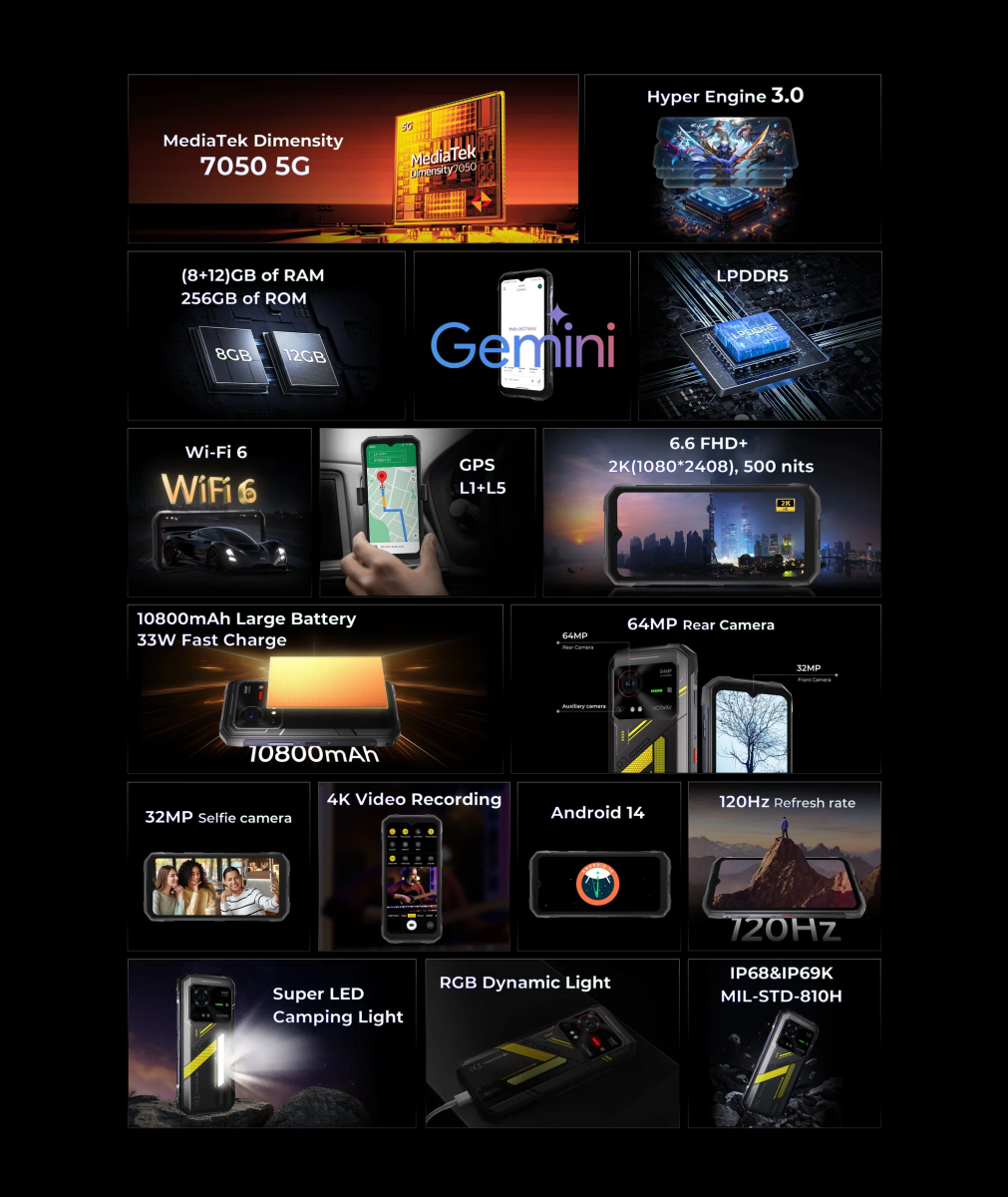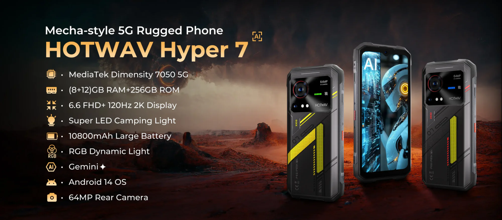 Смартфон Hotwav Hyper 7 5G (черен), поддържа 2 SIM карти, 6.6" (16.76cm) дисплей, осемядрен Mediatek Dimensity 7050 2.6GHz, 8GB RAM, 256GB Flash памет (+microSD слот), 64 & 32 Mpix камери, Android459.19 лв