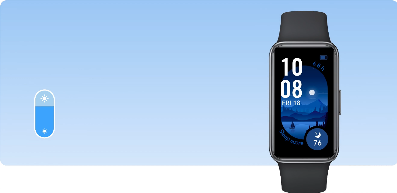 Сензорът за околна светлина на гривната регулира автоматично яркостта на екрана, за да осигури удобен изглед при всякакви условия на осветление.