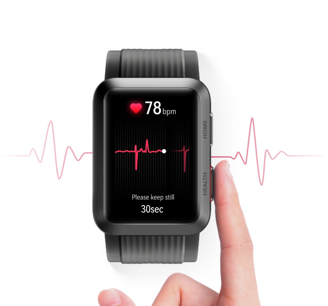 ЕКГ анализ, който не пропуска нито един удар Приложението за ЕКГ разполага с високоефективен ЕКГ сензорен модул, който осигурява измервания на ЕКГ с еднократно отчитане, анализ в реално време и синусов ритъм, предсърдно мъждене*, за да бъдете информирани относно основните рискове, свързани със здравето на сърцето. Новата и подобрена електродна технология прави събирането на ЕКГ сигнал по-точно и по-отзивчиво, с добавянето на електроди с PVD покритие върху извития, прозрачен сапфирен гръб, което води до удобно, плътно прилепване към кожата. Просто докоснете електрода отстрани за 30 секунди, а резултатът в реално време може да се покаже на вашия часовник след измерването |