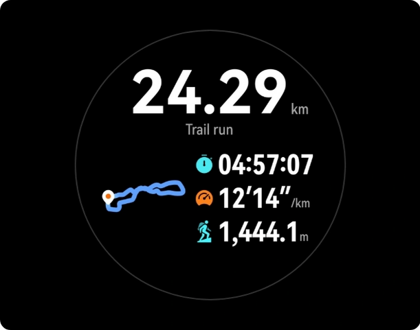 Следи показатели на високо ниво, като баланс на времето за контакт със земята и вертикално трептене. Предлагат се и голям брой офлайн карти за изтегляне.