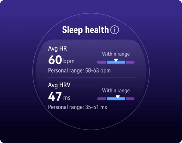 Денонощно наблюдение на умората Следете вариабилността на сърдечната си честота (HRV) през целия ден, което благоприятства управлението на физическото Ви състояние, тренировъчен график и ежедневни навици. | ![]() |