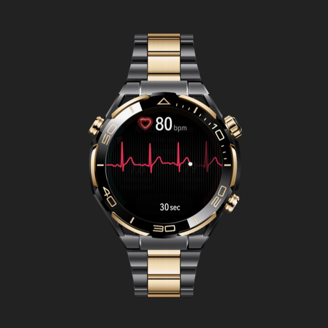 HUAWEI WATCH ULTIMATE DESIGN е вашето сигурно пристанище в бурното море, със своята черна нанокристална керамична рамка, наподобяваща рул, и шест 18K златни инкрустации, отразяващи се светлини, които ви водят през нощта! Поставете го на китката си, защото е готов е да предизвика фурор!