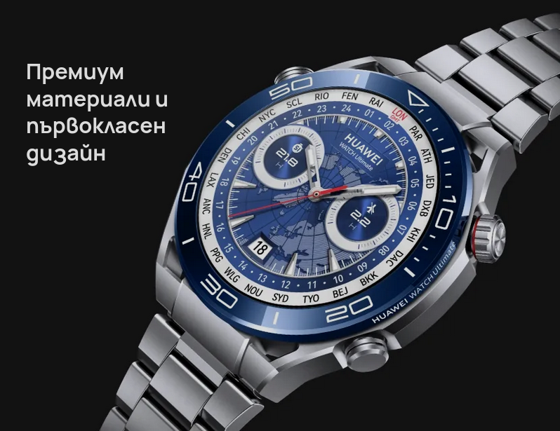 HUAWEI WATCH Ultimate е създаден, за да ви подкрепи във всяко ваше приключение. Той е шедьовър сред смарт часовниците, впечатлявайки с дизайн, динамика и издръжливост. Извисете се до нови върхове, потопете се в най-дълбоките води и изследвайте непознатото със смелост и увереност: този часовник е създаден, за да разчитате на него!