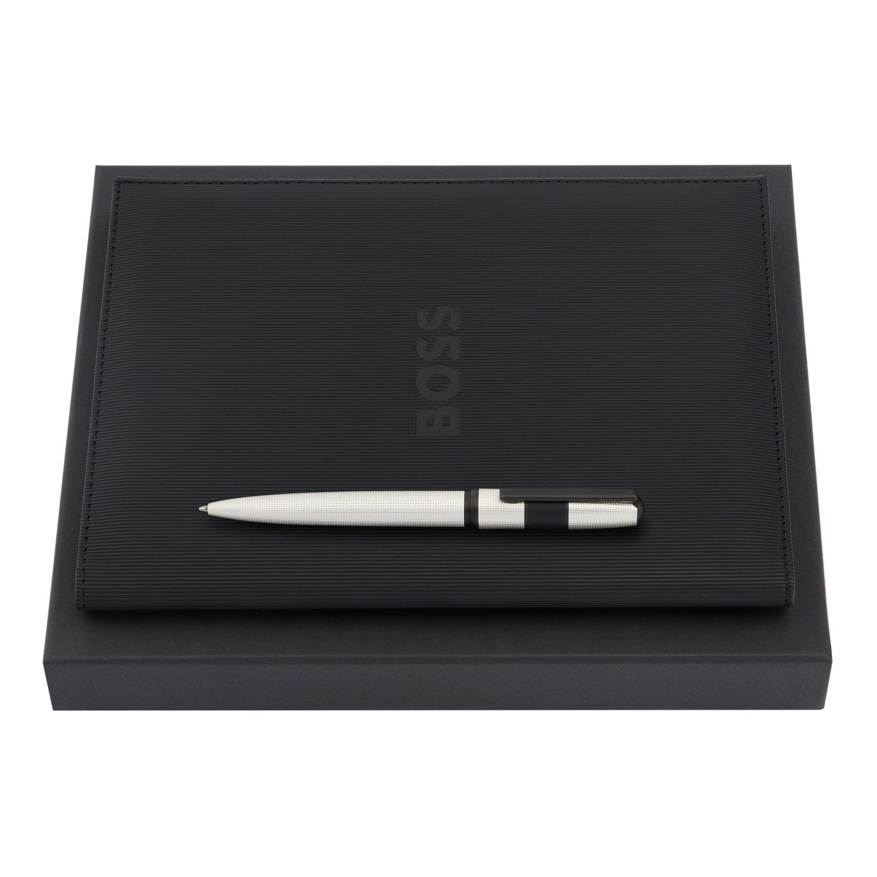 Hugo Boss Комплект папка Formation Line, А5, черна и химикалка Grid Pearl, бяла