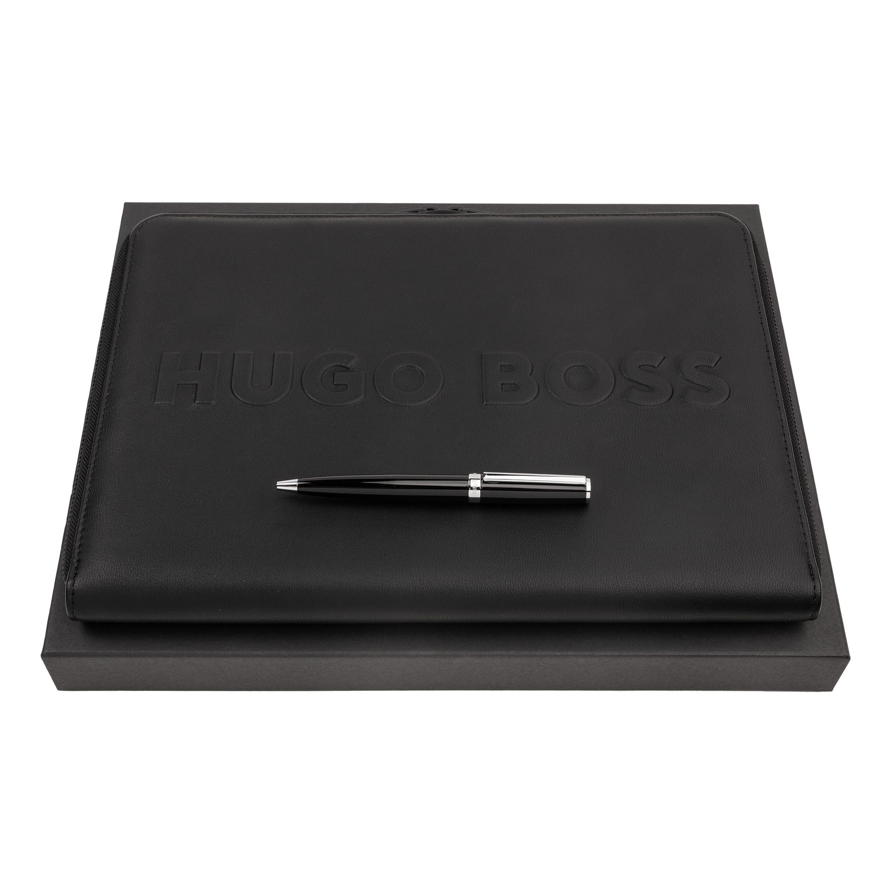 Hugo Boss Комплект папка Label, А4 и химикалка Gear Icon, черни