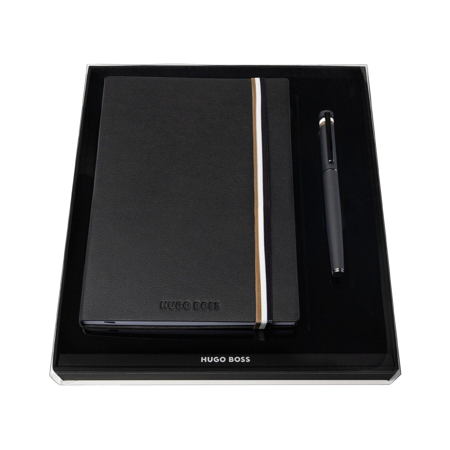 Hugo Boss Комплект тефтер и ролер Iconic, А5, черни