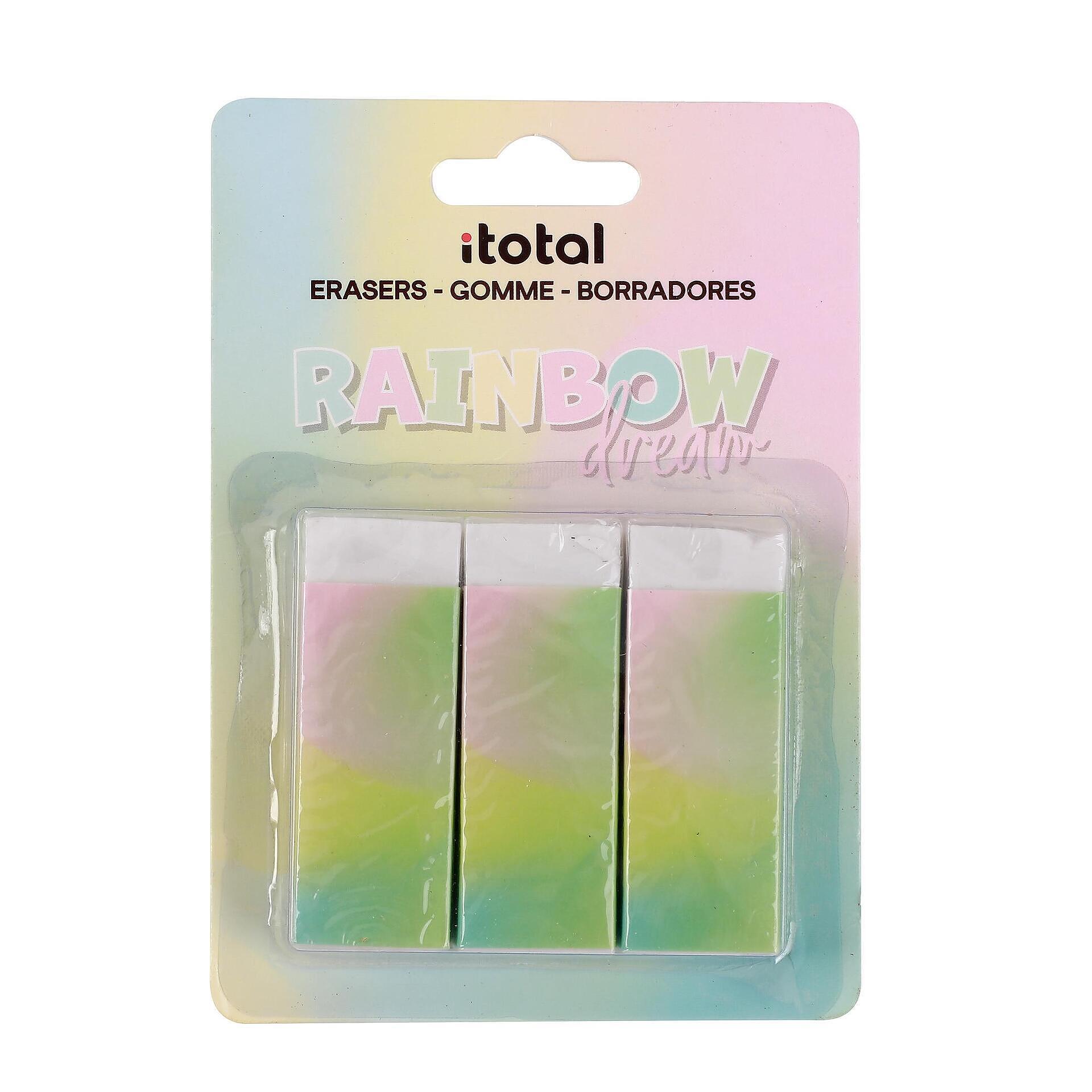 Комплект от 3 броя гумички с покритие в цвят дъга в пастелни цветове.