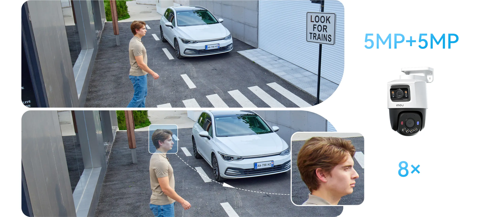 Dual 5MP lenses with 8× digital zoom let you capture every moment in sharp detail.