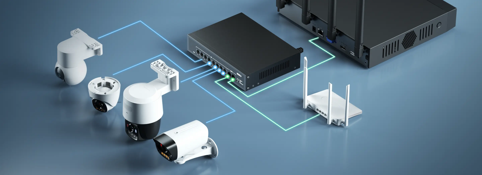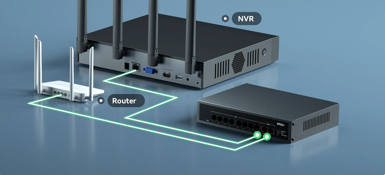 Dual uplink ports let you connect to both your NVR and router at the same time. Monitor locally in real-time while streaming to the cloud.