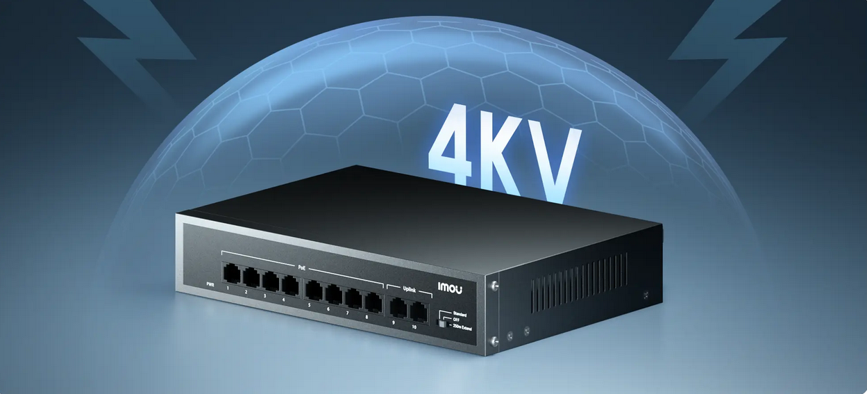 4KV lightning protection shields your network from electrical surges and storms. The durable metal enclosure dissipates heat efficiently.