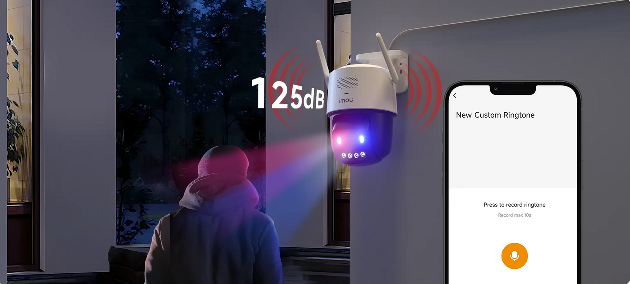 Personalized Alarm Ringtone, Powerful Volume, Flashing Red & Blue Lights - All to Deter Intruders.