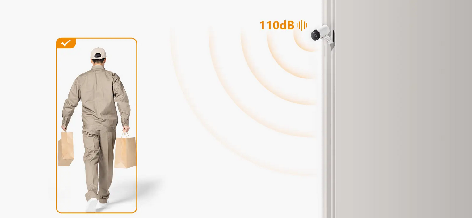 Advanced human detection algorithms can immediately send you alerts when a human target has been detected, combine with the110dB helps you easily keep unwelcome visitors away.