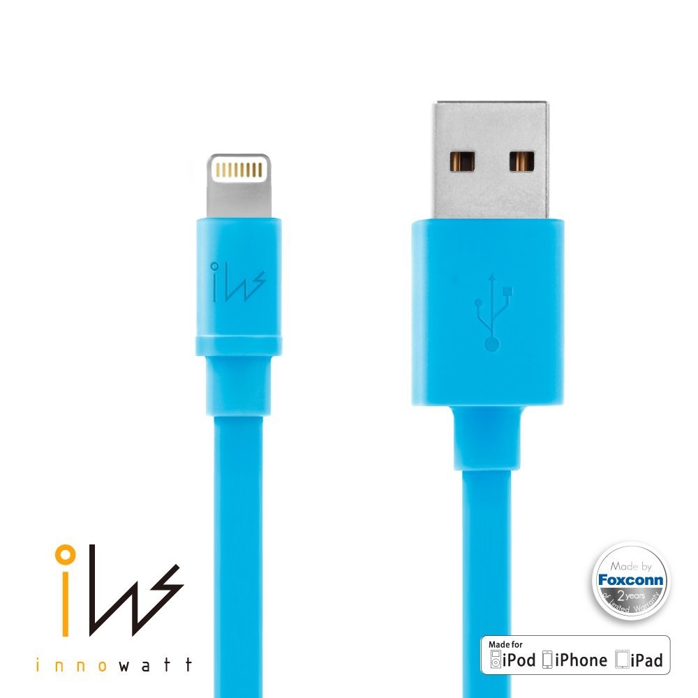 Innowatt Flat Lightning to USB Cable - USB кабел за iPhone 5, iPhone 5S, iPhone SE, iPhone 5C, iPod Touch 5, iPod Nano 7, iPad 4 и iPad Mini, iPad mini 2, iPad mini 3 (син)