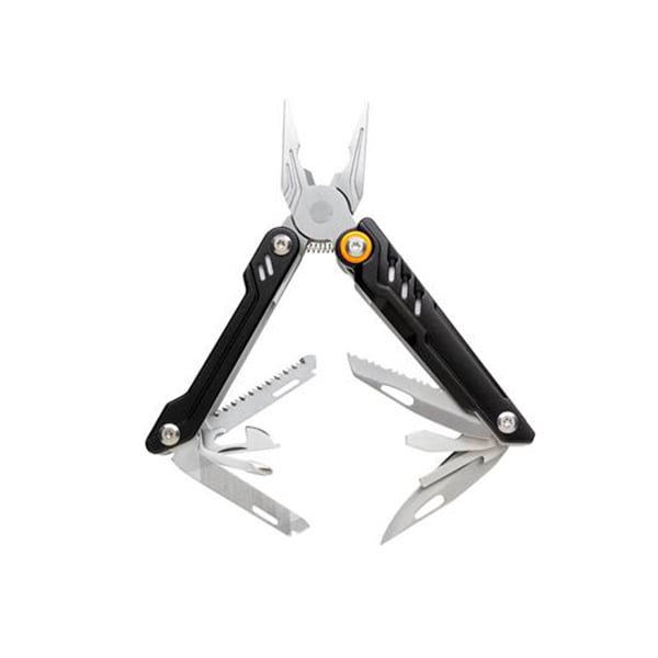 • Включени инструменти: клещи с дълъг нос, стандартни клещи, клещи за оголване на кабели, назъбено острие, отварачка за бутилки, голяма отвертка с плоско острие, средно плоска отвертка, нож, пила, кръстообразна отвертка, отварачка за консерви, малка плоска отвертка, трион.