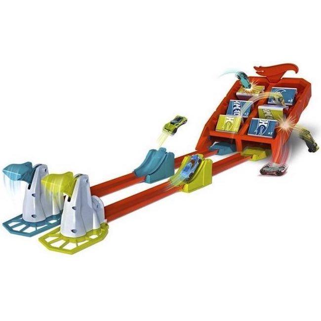 Тази интерактивна игра, се състои от две платна, в края на всяко от което има по 3 елемента. Всеки играч слага количка в неговото място за изтрелване и трябва да прецени скороста и силата на изтрелване. Целата на играча е да обърне неговите три елемента и да направи логото на Hot Wheels в един цвят