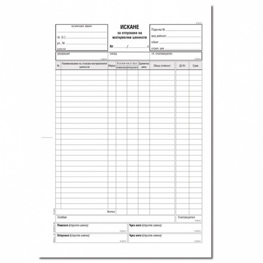 Искане за отпускане на МЗ (26 р.) брошура А-30.31*, химизирана хартия, 100 л.