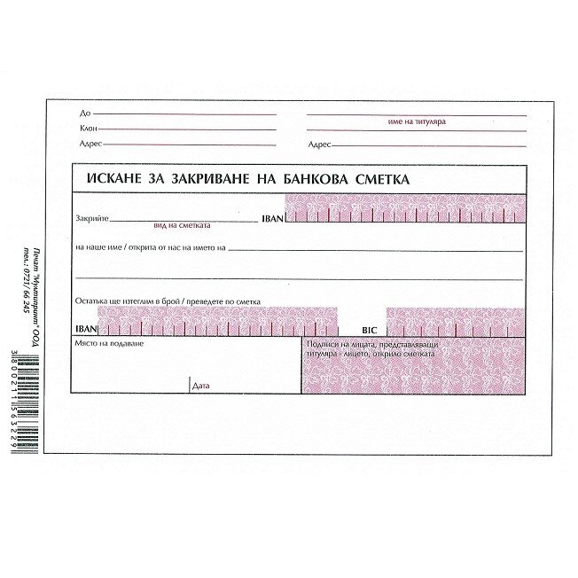 Искане за закриване на банкова сметка блок 1092-B, офсетова хартия, B6, 100 л.