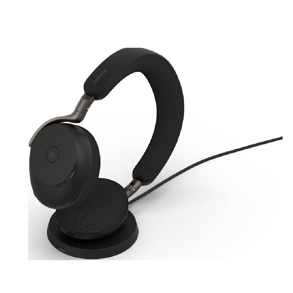 - Съдържание на опаковката: Jabra Evolve3 75, Bluetooth адаптер Link 390c, безжична зарядна подложка (WLC), калъф за пренасяне, USB-C към USB-C кабел, документация