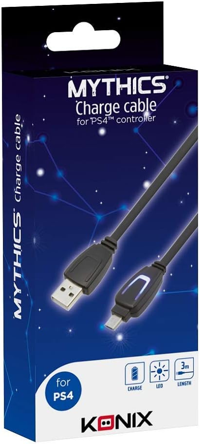 Кабел Konix - Mythics Play & Charge LED Cable 3 m (PS4)