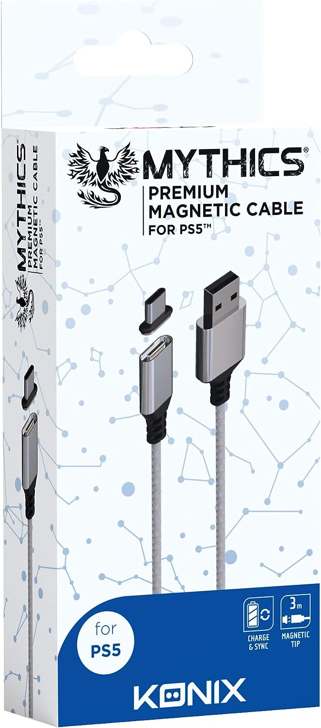 Кабел Konix - Mythics Premium Magnetic Cable 3 m, бял (PS5)