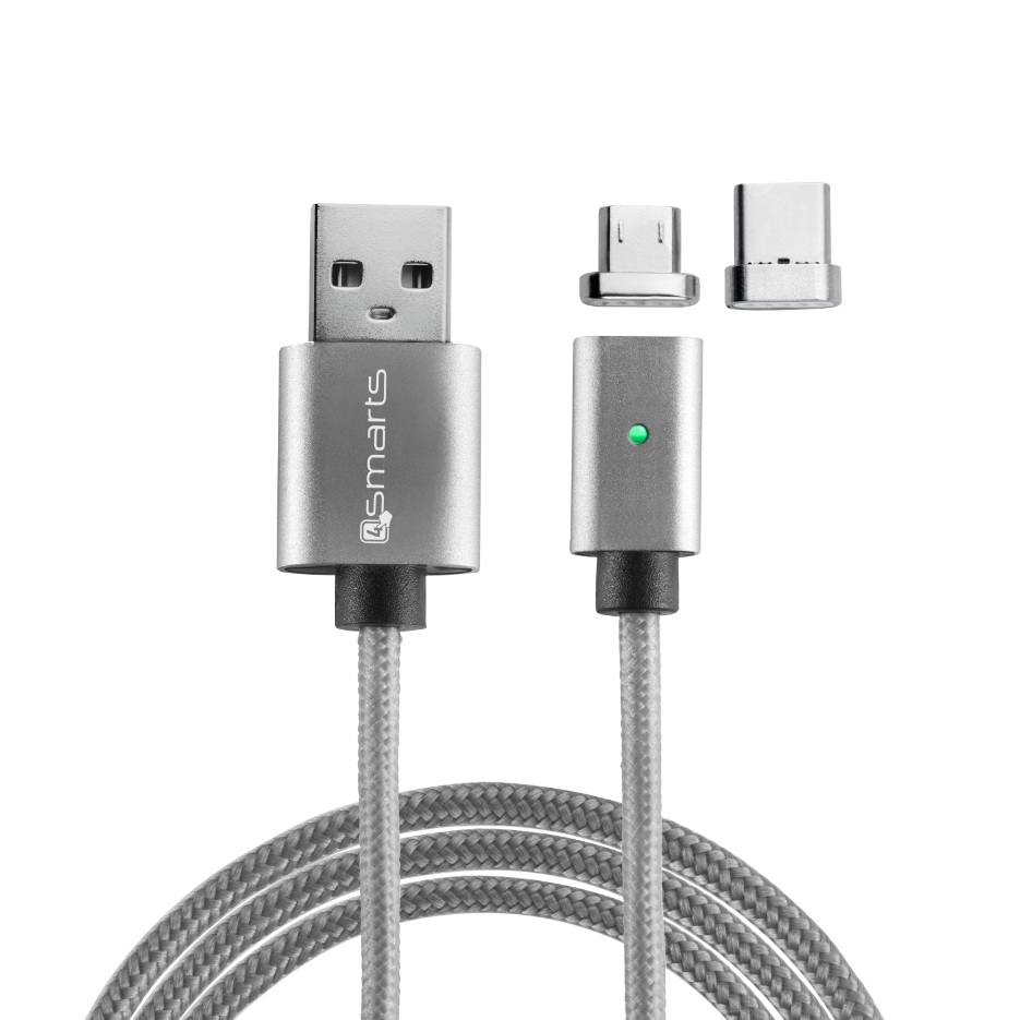 Модел: Magnetic USB Cable GRAVITYCord 1m grey + USB-C and MicroUSB Connectors
