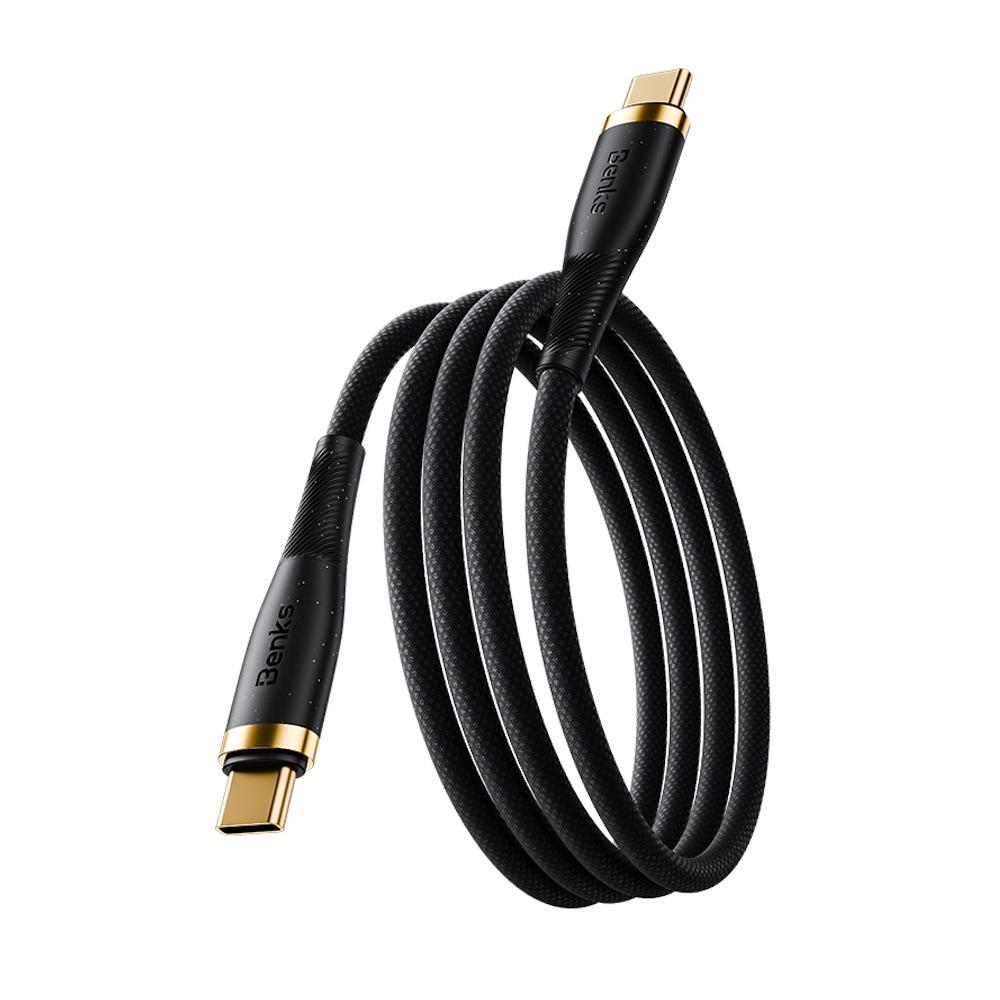 Кабел с въжена оплетка и бързо зареждане за устройства с USB-C порт - Benks PowerWeave USB-C to USB-C Braided Cable 100W PD (100 см) (черен)