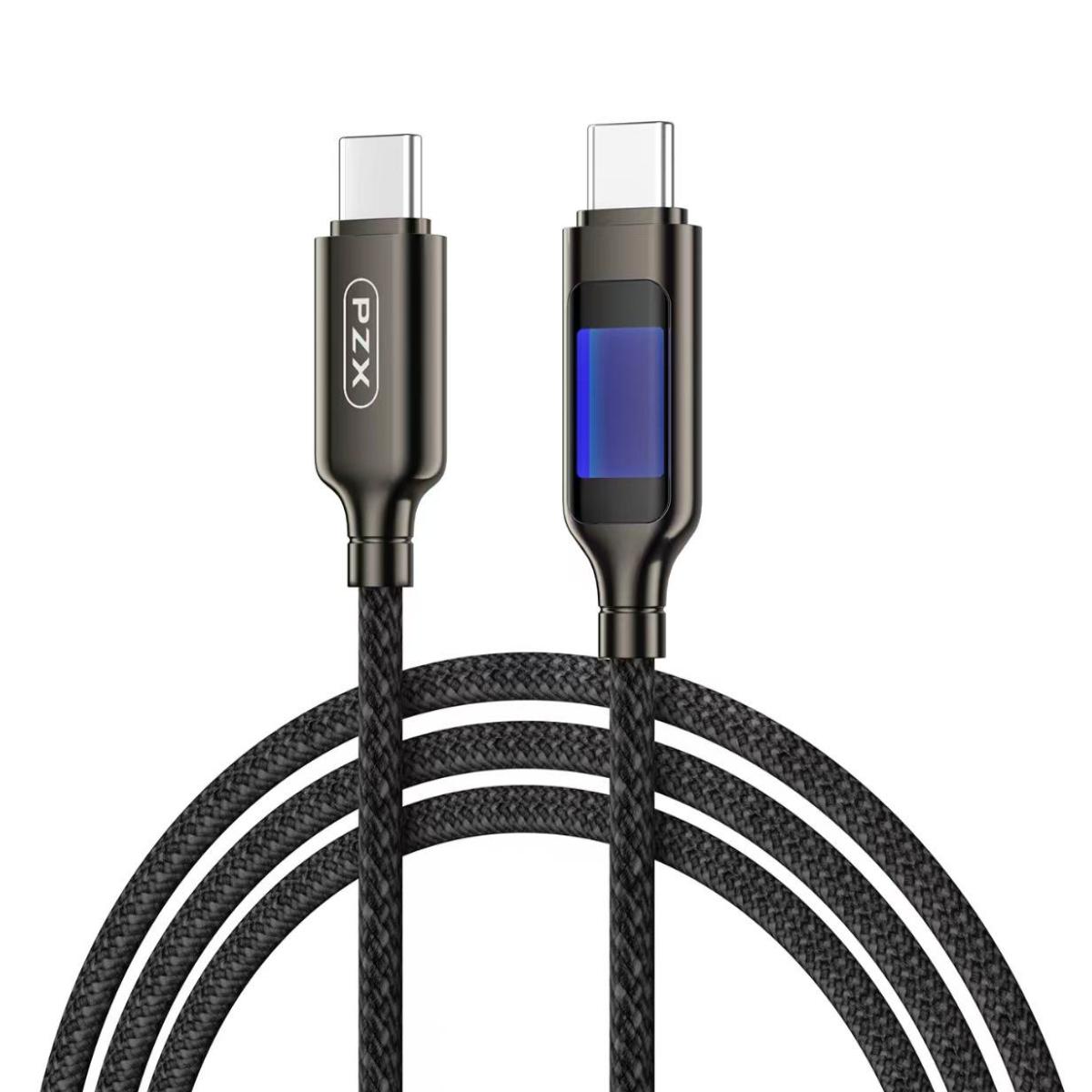 Кабел Type C - Type C PZX V230C 60W, с оплетка 7Led