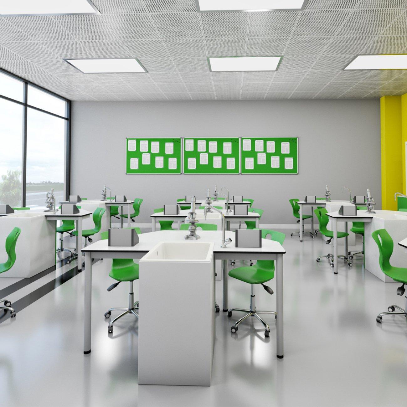 Кабинет по химия и биология RFG Quin, над VII клас, за 24 ученика, HPL плот, метални крака, бяло-зелен