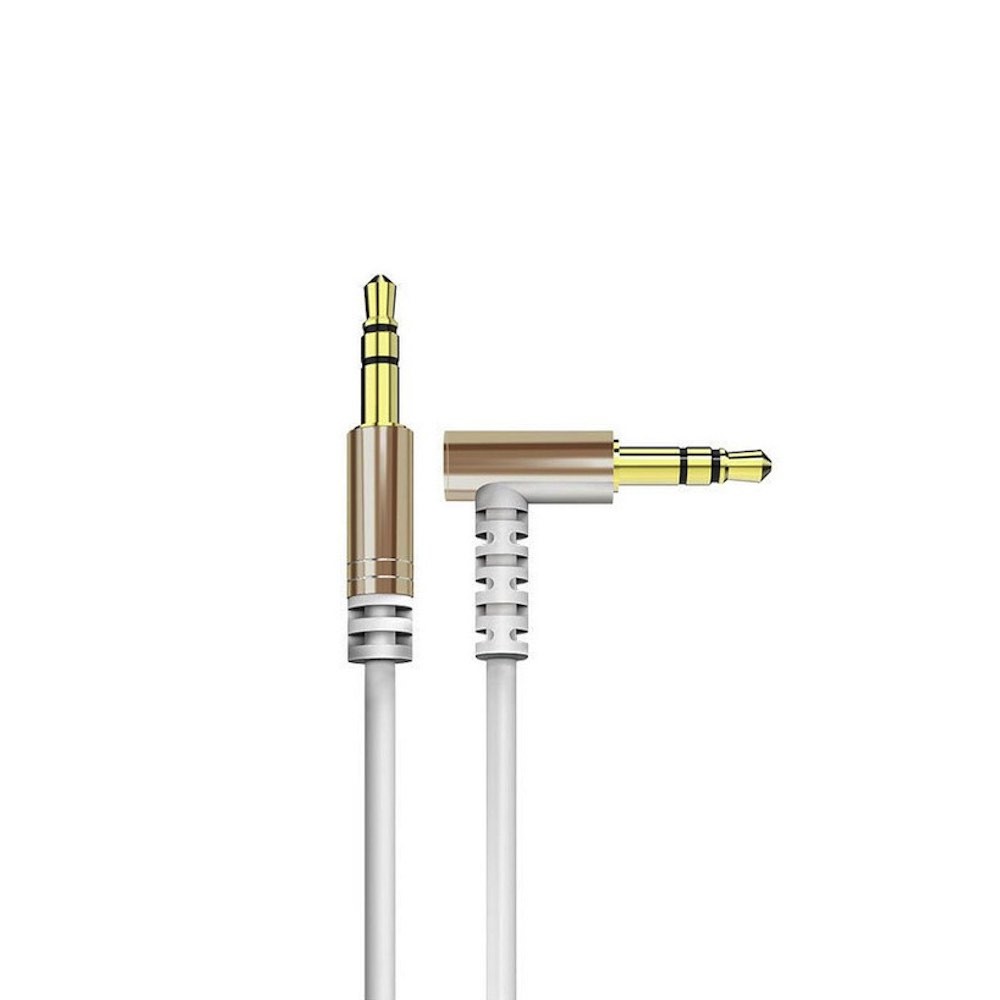 Качествен 3.5 мм. аудио кабел (100 см) - Dudao L11 Angled Aux Audio Cable (бял)