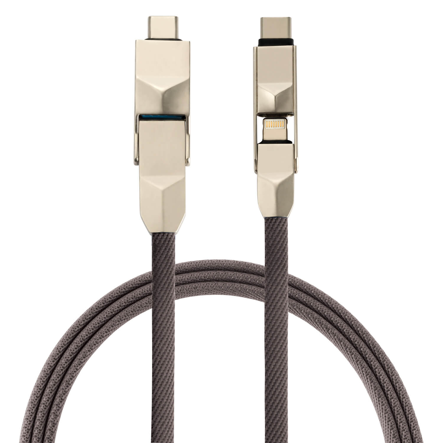 Кабелът предалга 6 разлини вида свързаност: USB и USB-C към MicroUSB, USB-C и Lightning