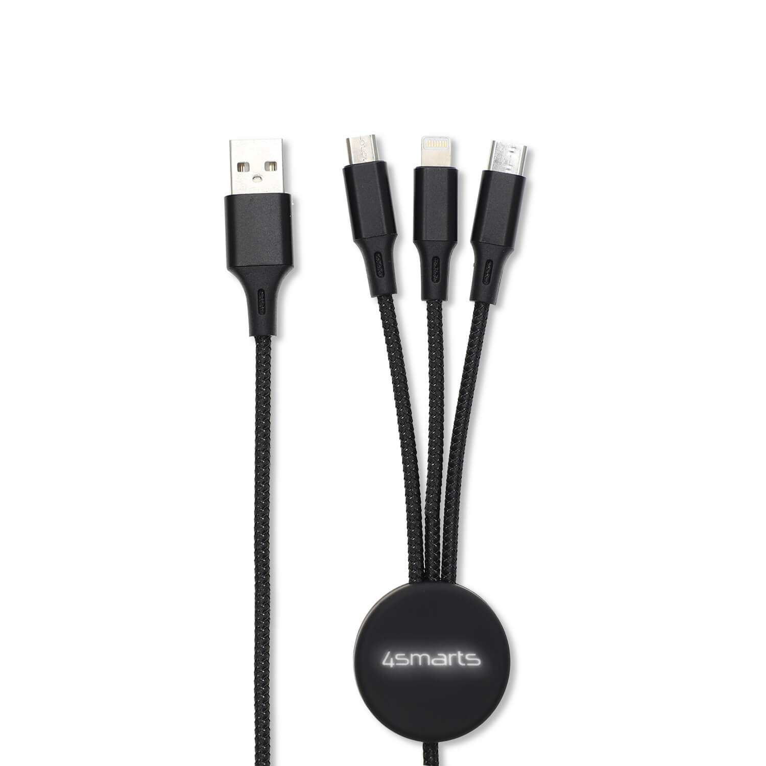 Кабел за синхронизиране на информация и зареждане на устройства с MicroUSB, Lightning и USB-C