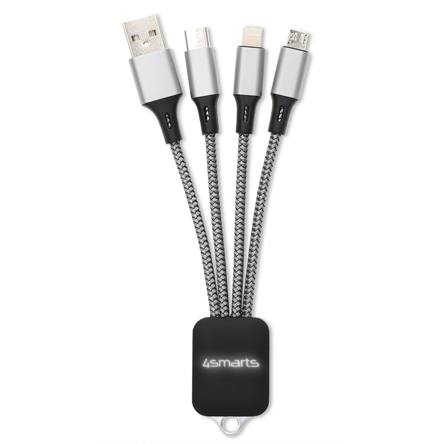 Кабел за синхронизиране на информация и зареждане на устройства с MicroUSB, Lightning и USB-C