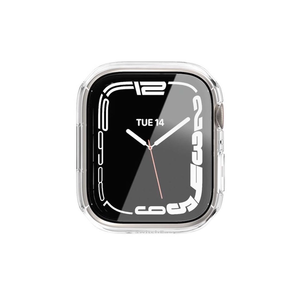 Качествен твърд кейс с вграден стъклен протектор за дисплея на Apple Watch 8 45мм, Apple Watch 7 45мм - Switcheasy Nude Tempered Glass Hybrid Case (прозрачен)