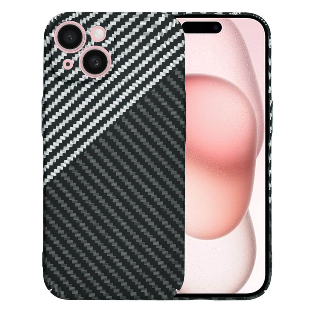 Качествен тънък матиран кейс за iPhone 15 - Techsuit Carbonite FiberShell Case (черен-сив)