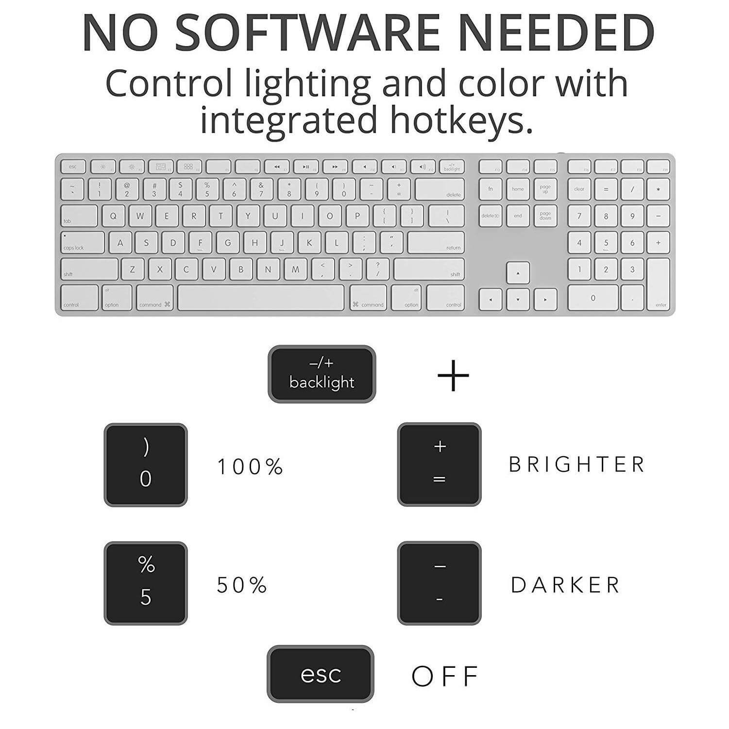 Клавиатурата е с подсветка, изключително удобна при работа в тъмни помещения. Може да настройвате нивото на яркостта или да го изключвате. Подсветката е със собствена вградена презареждаема батерия, така че клавиатурата ви ще работи дори и батерията на подсветката да е изтощена