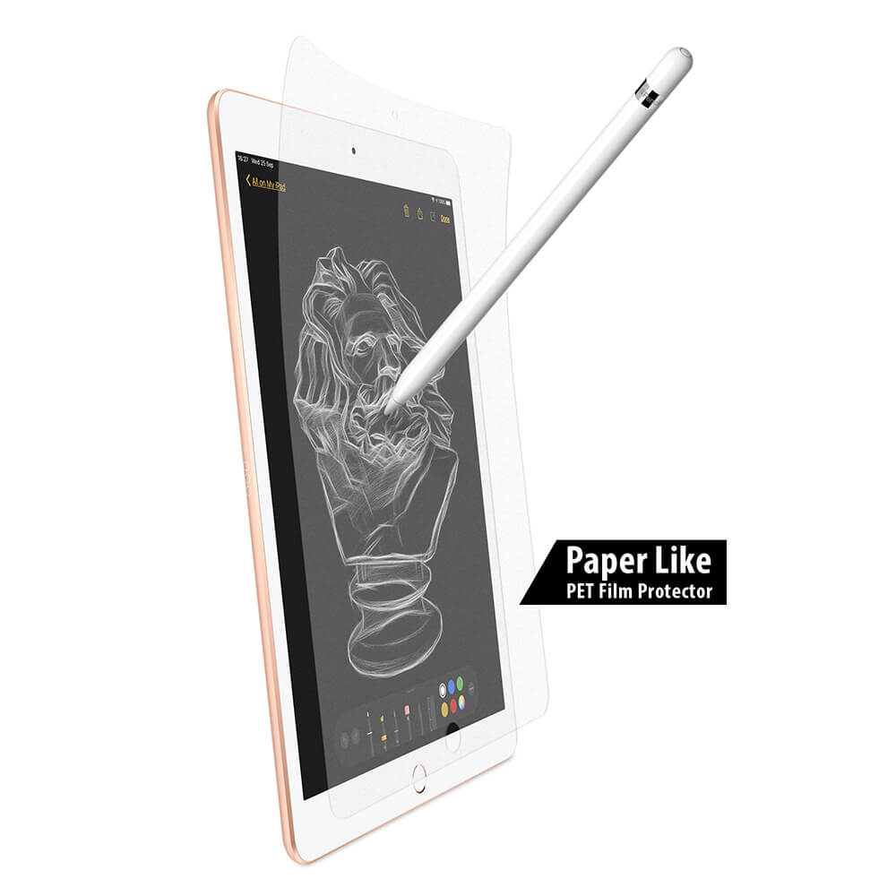С дебелина от едва 0.2 мм и допир като на истинска хартия, с това покритие и Apple Pencil в ръка, ще имате чувството, че рисувате или пишете върху хартия