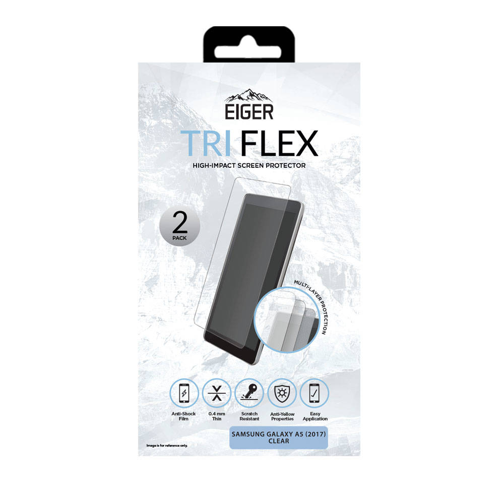 В комплекта: - 2 x Eiger Tri Flex High-Impact Screen Protector - 1 x микрофибърна кърпичка - 1 х мокра кърпичка - 1 х антистатична лепенка за премахване на прашинки