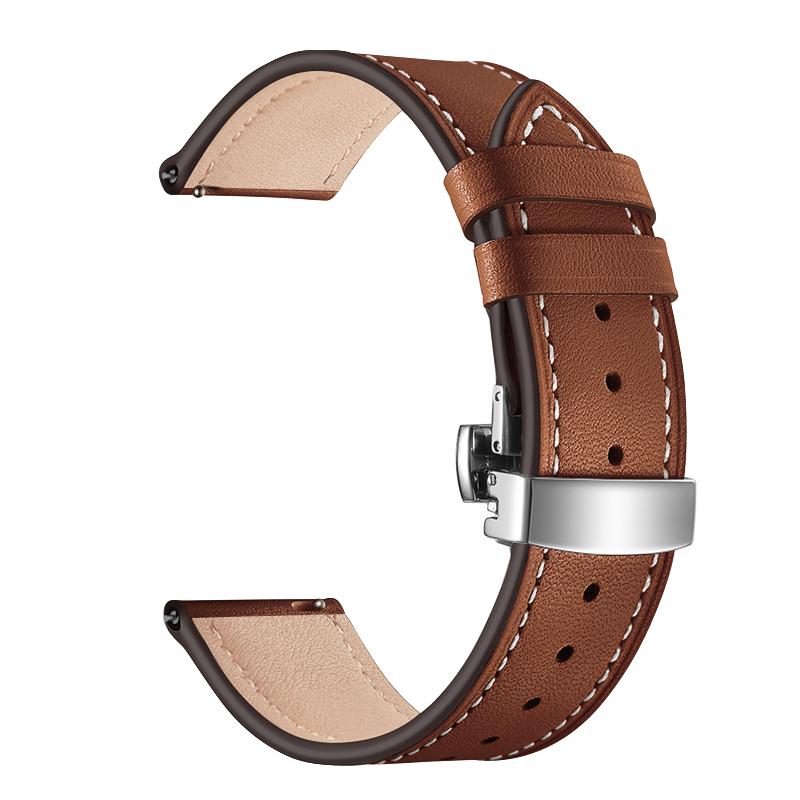 Каишка за Smart Watch 20мм, Leather Classic Buckle Strap, кожена /карамел + сребърна катарама/